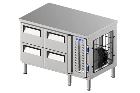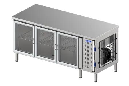 Counter cabinets with solid doors are compact refrigeration units designed to fit beneath a counter, featuring durability and corrosion resistance. The sleek and professional full stainless steel construction adds a modern and upscale aesthetic to any professional kitchen or commercial space.