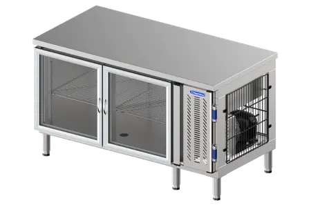 Counter cabinets with glass doors are compact refrigeration units designed to fit seamlessly beneath a counter, featuring durability and corrosion resistance. It is equipped with transparent glass doors, providing full visibility of stored items without the need to open the door. This feature helps reduce energy loss and maintain a consistent internal temperature.